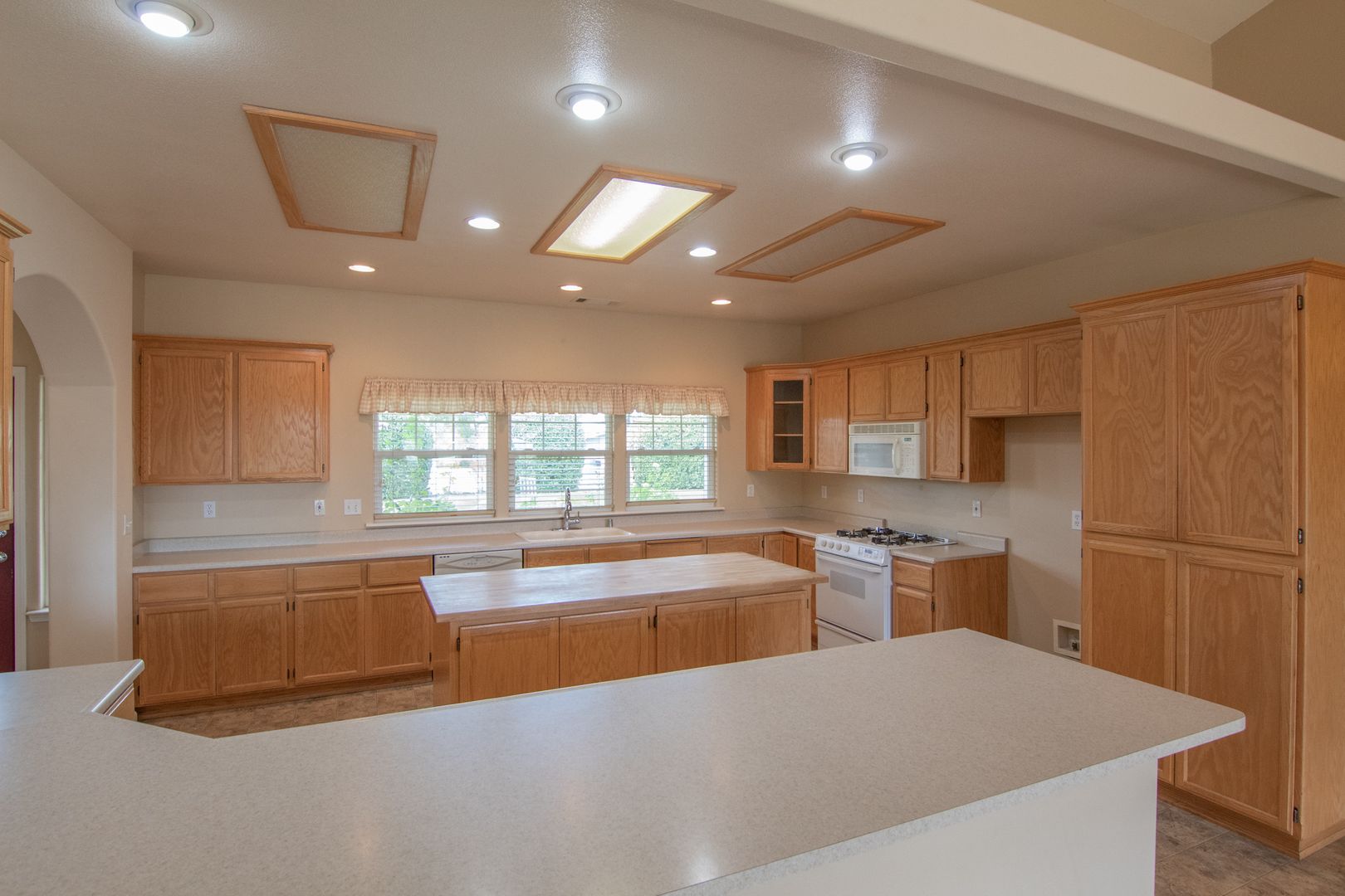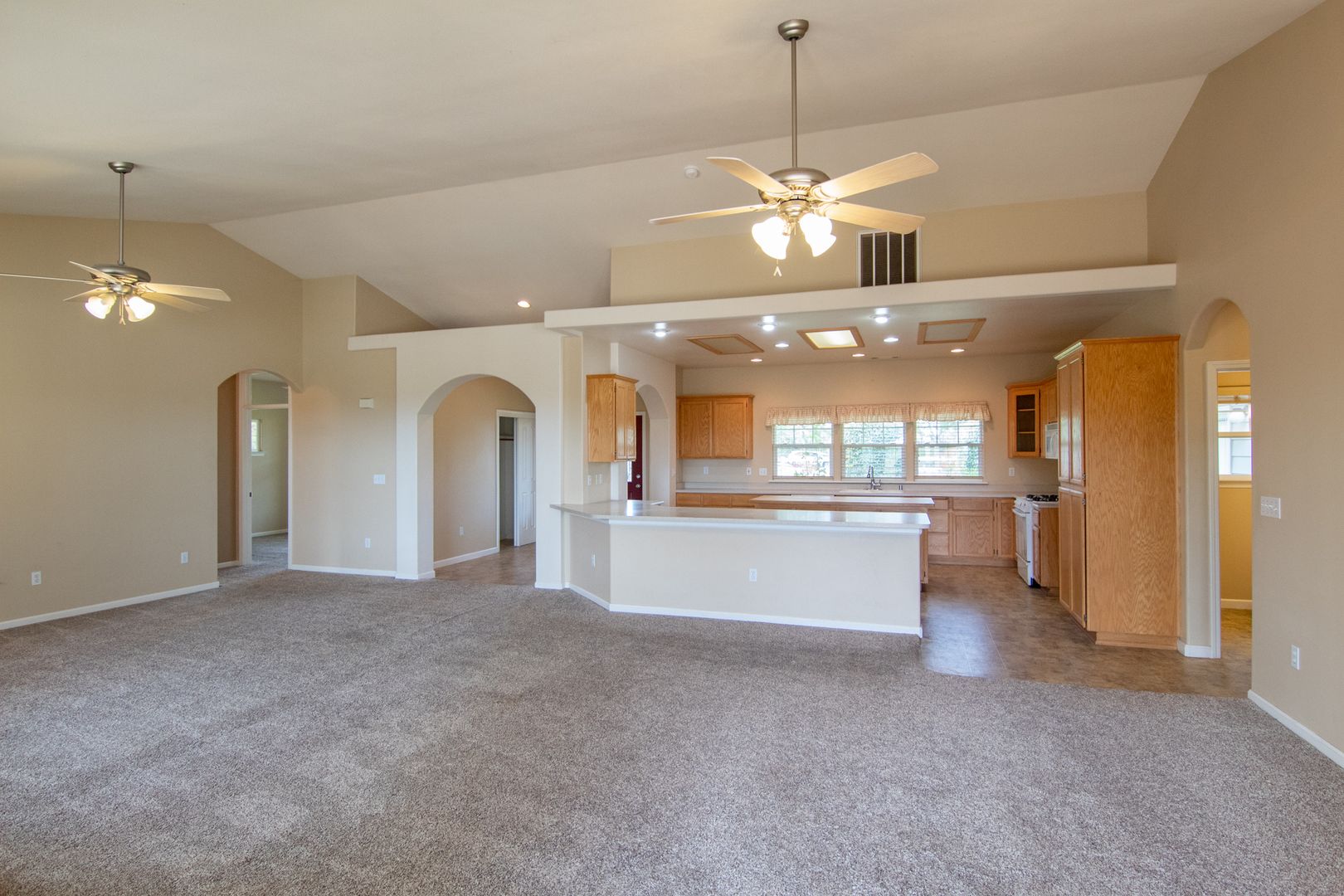 This 1,960 sq. ft. home features a split floor plan with open living areas that create a bright and airy feel throughout. The kitchen includes a refrigerator, microwave, dishwasher, and kitchen island, making it ideal for cooking and entertaining.